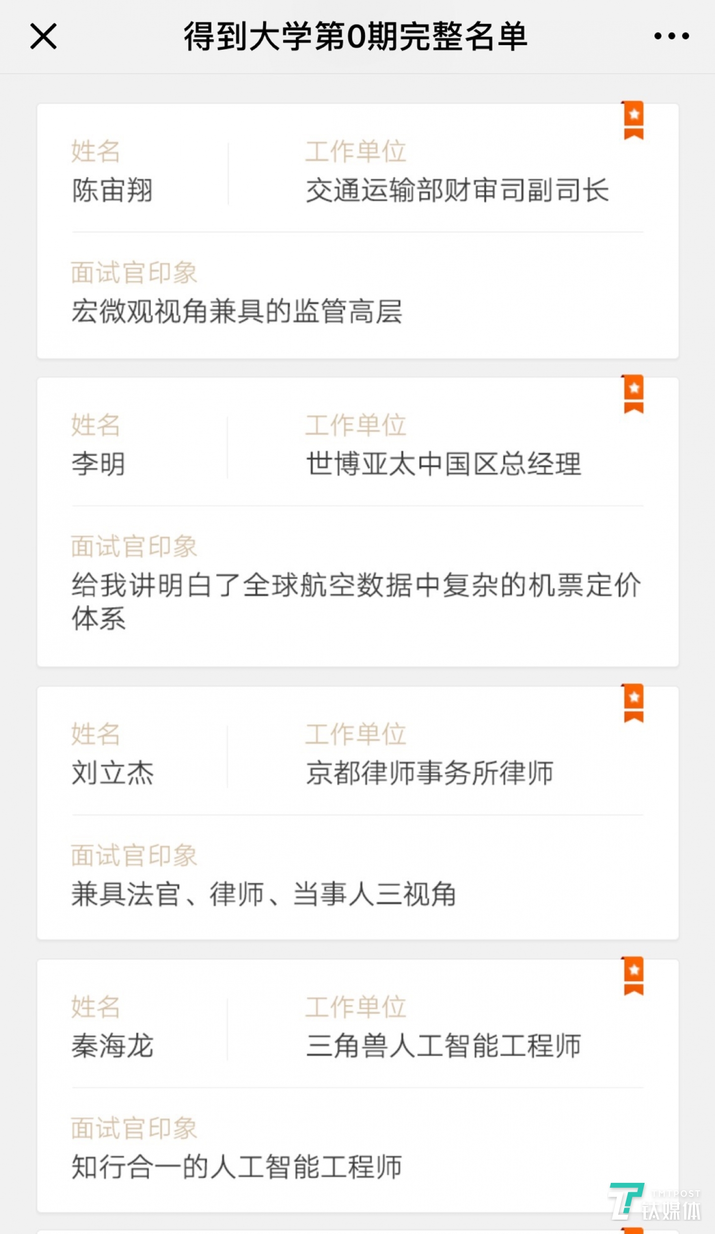 “得到大學(xué)第0期完整錄取名單”部分內(nèi)容截圖