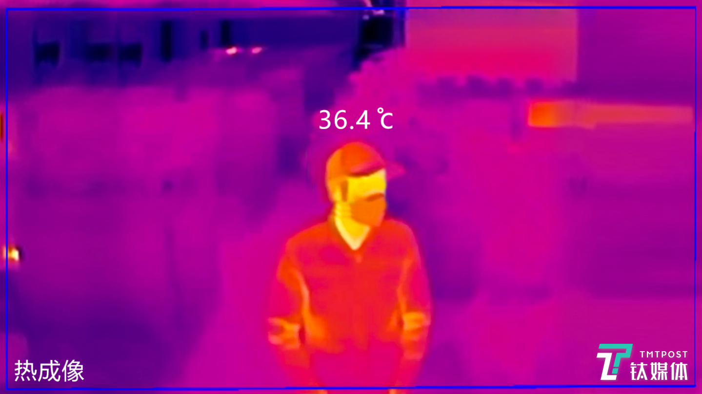 北京南站,工作人員通過智能紅外測溫儀監(jiān)測到達旅客體溫。通過AI體溫檢測,即便是佩戴帽子和口罩也能夠快速篩查。(圖/鈦媒體編輯項歐,商湯科技)