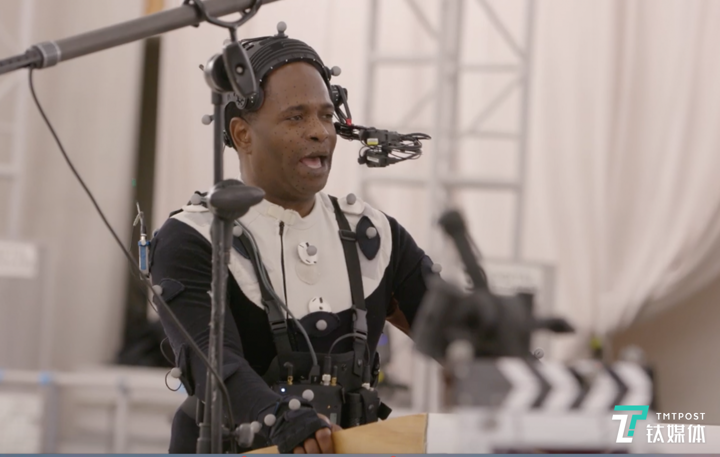 馬丁·路德·金扮演者 Hank Thomas 在數(shù)字人制作中進(jìn)行動(dòng)作數(shù)據(jù)采集(來(lái)源:紀(jì)錄短片 The March)