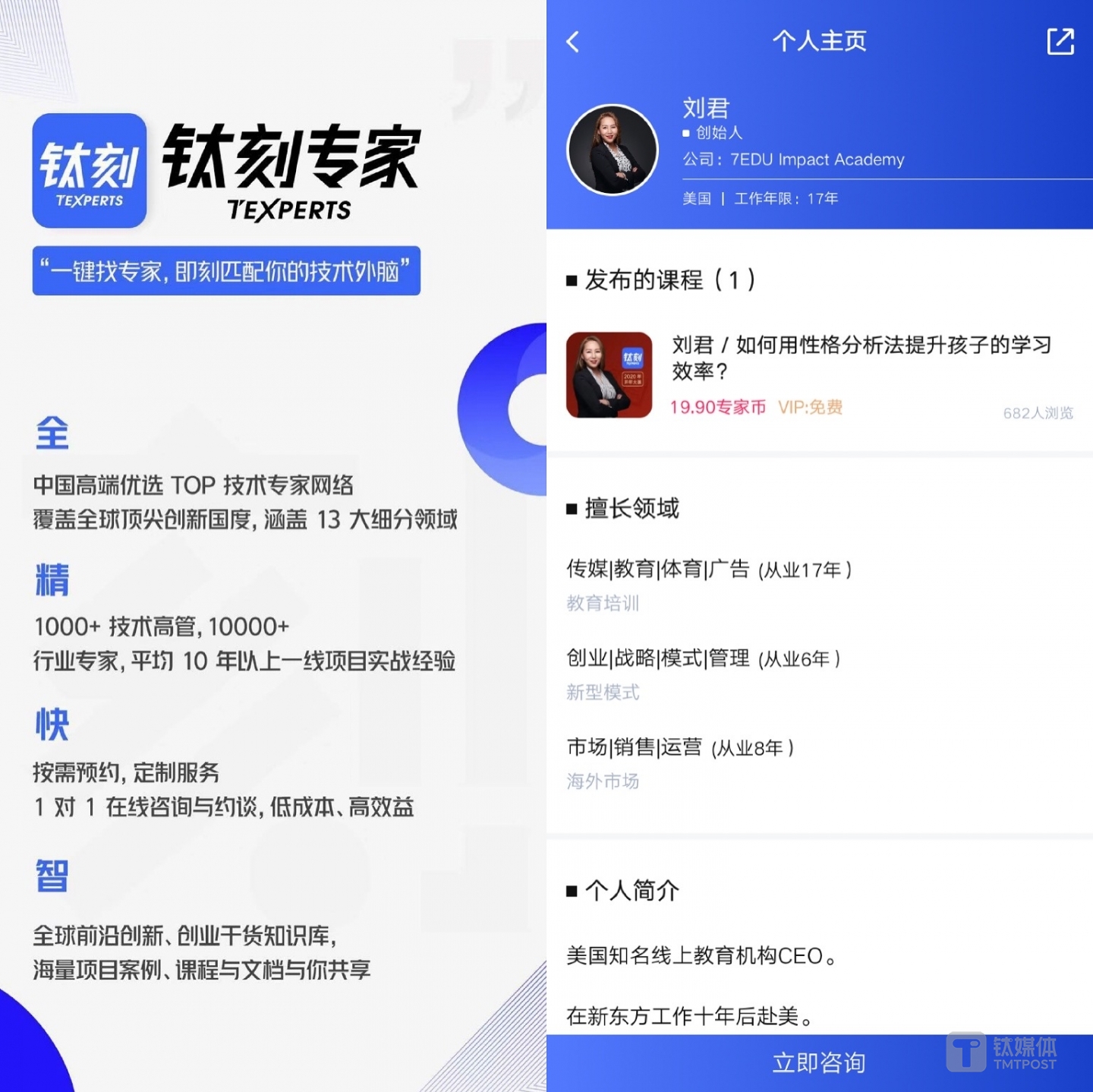 劉君現(xiàn)已入駐鈦刻專家App,用戶可以通鈦刻專家App與劉君進(jìn)行線上一對(duì)一交流咨詢。