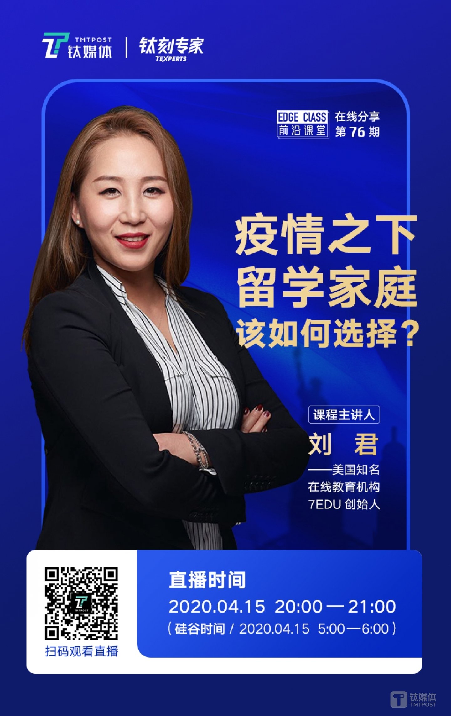 本期前沿課堂,鈦媒體邀請(qǐng)到7EDU創(chuàng)始人劉君為大家?guī)?lái)疫情之下,留學(xué)家庭該如何選擇的分享。