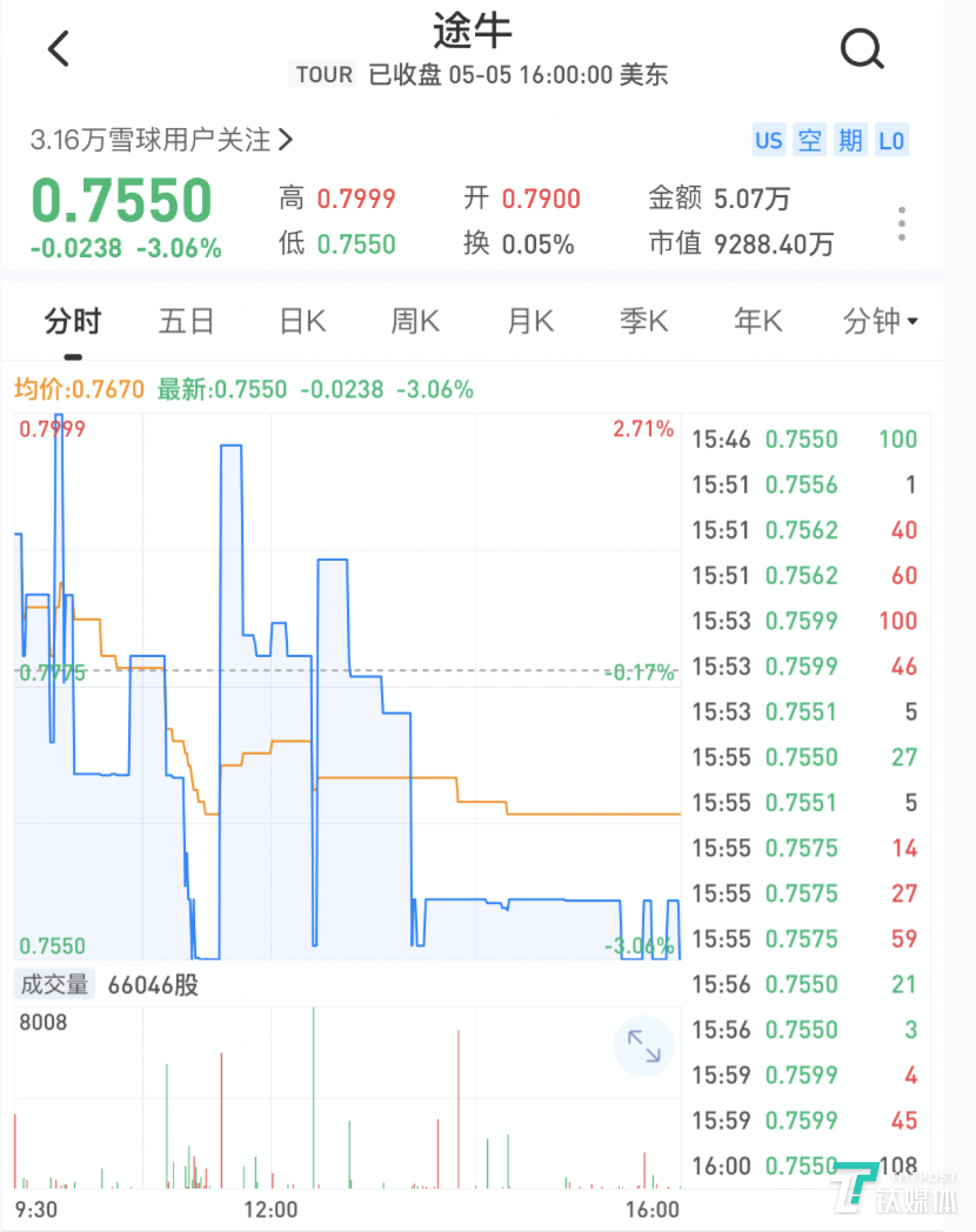 而就在財報公布后,途牛CFO辛怡宣布將于5月31日正式離職,隨后途牛的股價一路走低。截止鈦媒體發(fā)稿前,途牛股價已從疫情前的2美元左右跌到了0.755美元,市值為9288萬美元,連市值最高時的一成都不到。