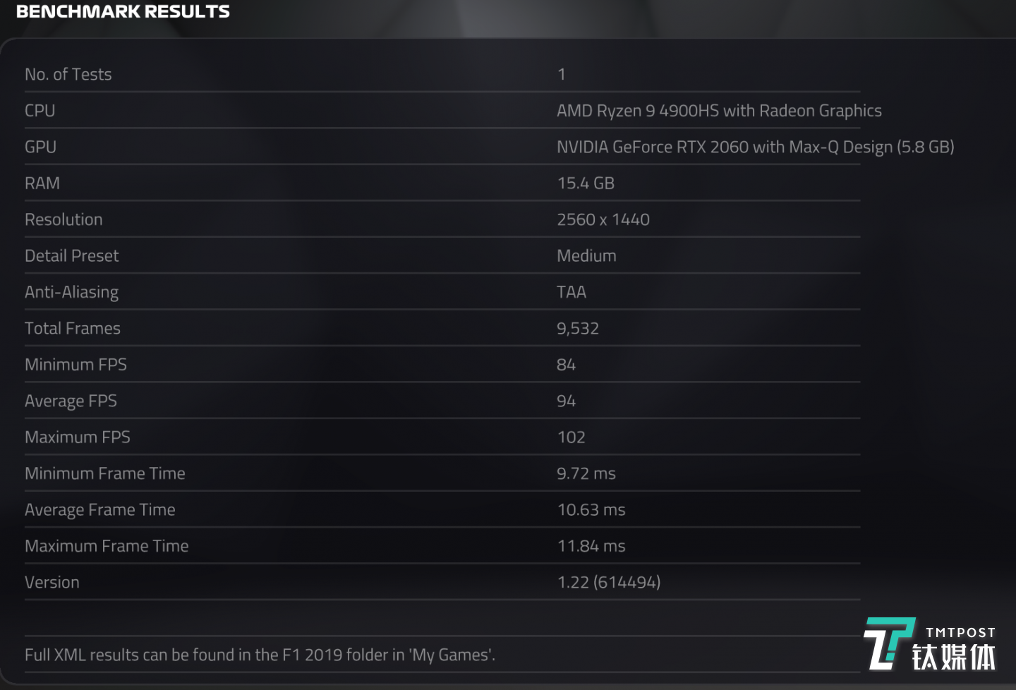 《F1 2019》測試結(jié)果