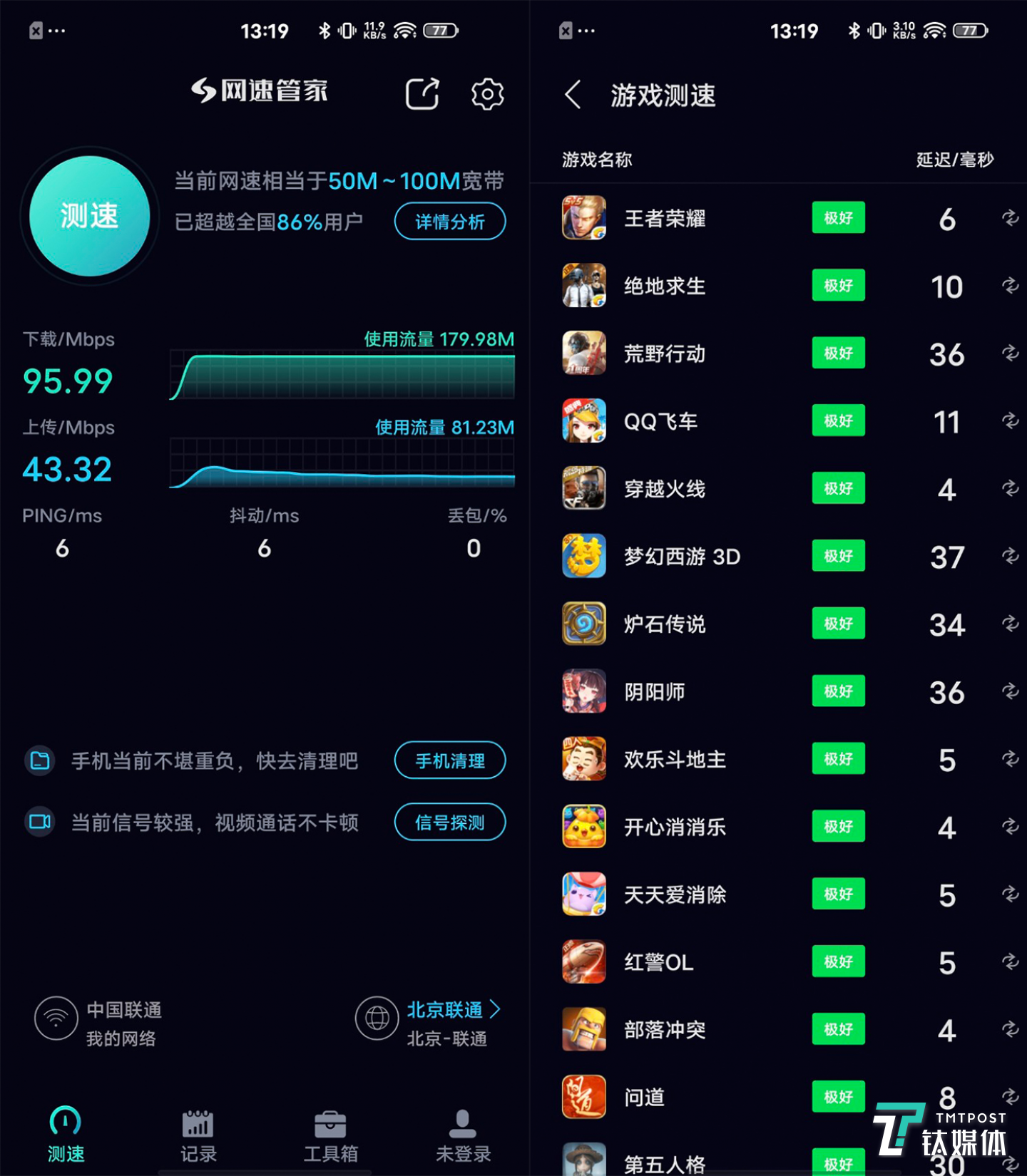筆者只能推測(cè),透過(guò)這個(gè)app進(jìn)行測(cè)速的時(shí)候,無(wú)線連接會(huì)自動(dòng)切換到最佳速率的節(jié)點(diǎn)(子路由信號(hào)頻段)進(jìn)行測(cè)試。這個(gè)切換過(guò)程可能并不能影響到其他的測(cè)速app。好在這個(gè)節(jié)點(diǎn)切換對(duì)于手機(jī)游戲的延遲影響并不大。