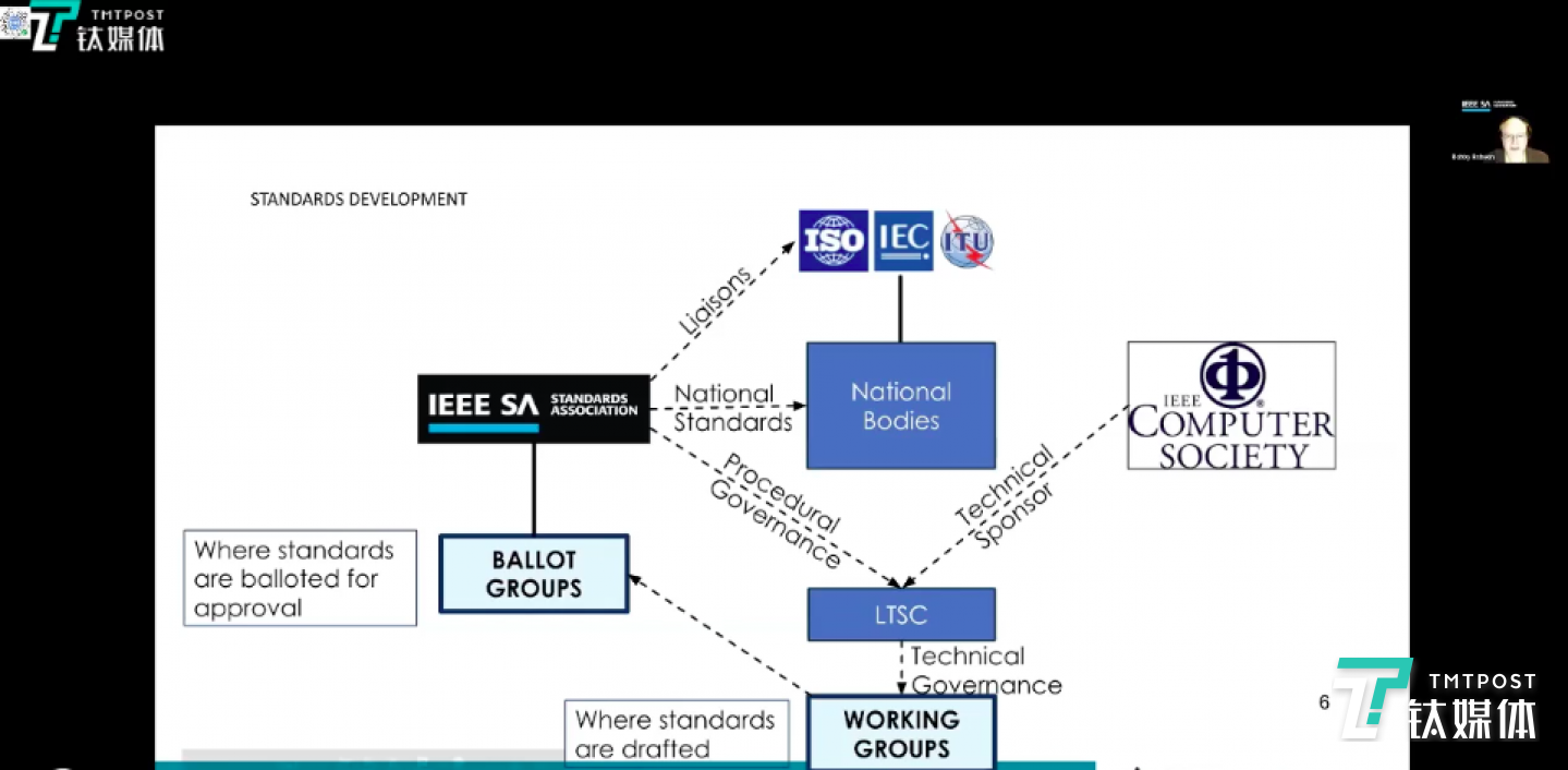 羅比·羅布森介紹了IEEE標(biāo)準(zhǔn)協(xié)會(huì)目前所從事的事情。IEEE SA目前有大約7500名成員,有2萬多人在IEEE標(biāo)準(zhǔn)協(xié)會(huì)的支持下開發(fā)標(biāo)準(zhǔn),同時(shí),IEEE總部雖然位于美國(guó)紐約,但大多數(shù)會(huì)員不在北美,它是一個(gè)全球性的國(guó)際組織。