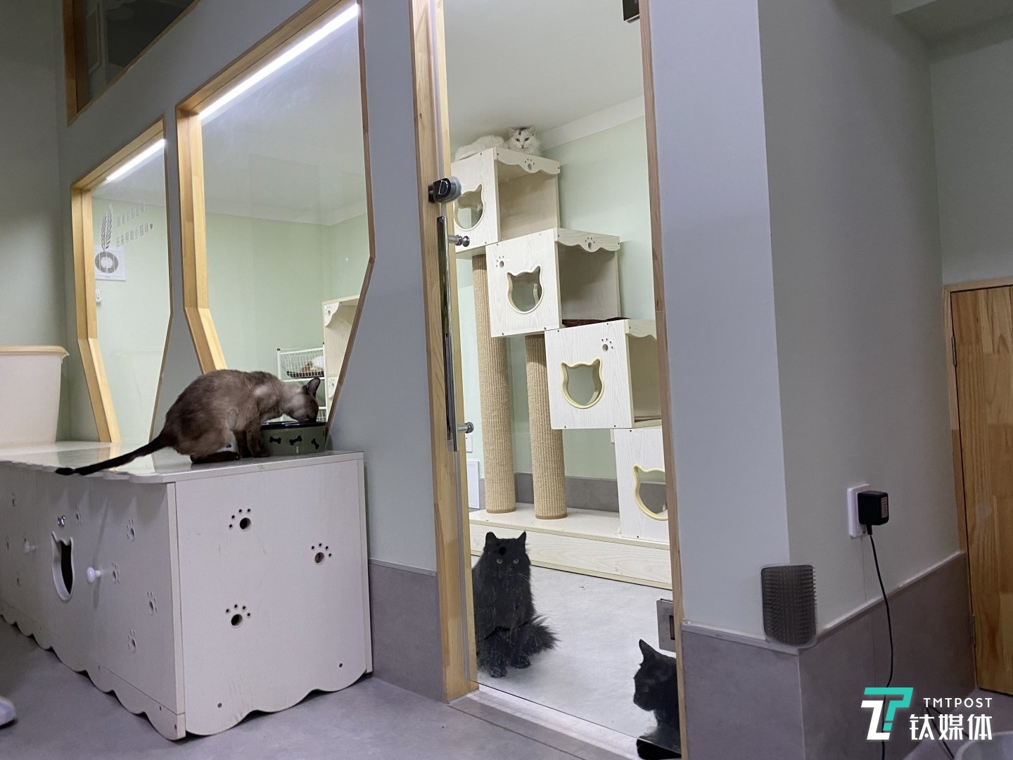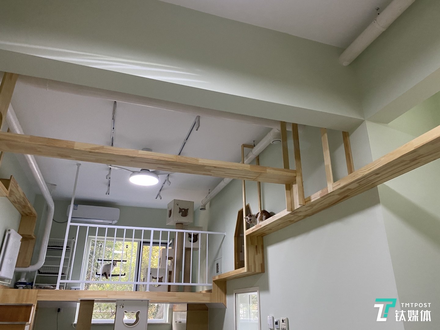 同時,幸運(yùn)土貓室內(nèi)盡可能減少了家具和裝飾,只有木制貓爬架分布在天花板下方。貓雖多,但沒有擁擠的感覺。