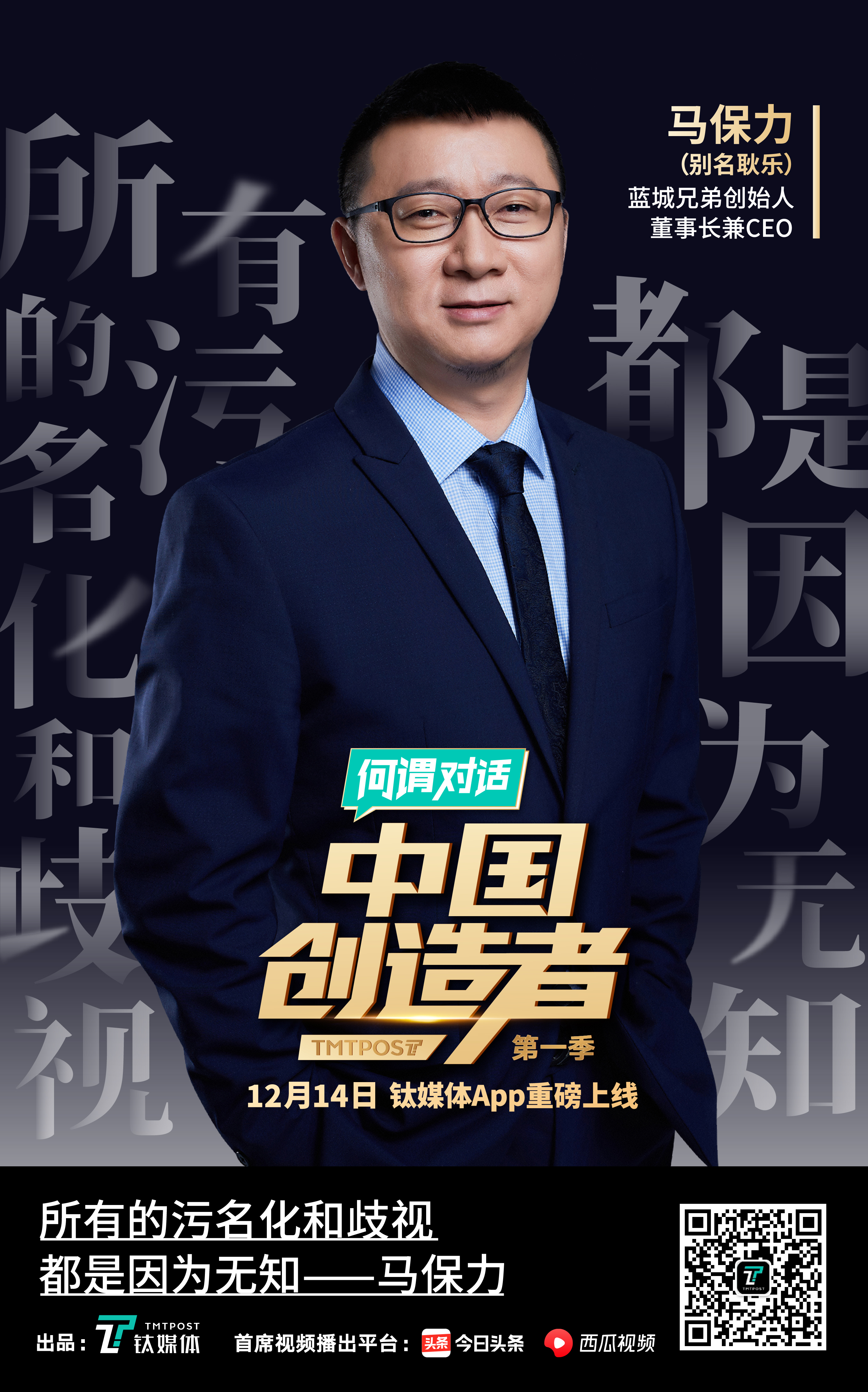 鈦媒體「何謂對話·中國創(chuàng)造者」第一季播出進入第十期特別節(jié)目,趙何娟對話“Blued”創(chuàng)始人和藍城兄弟公司董事長馬保力,這也是一次特殊的,與同性戀人群創(chuàng)造者代表觸及商業(yè)極其背后生理、心理、情感與倫理的深度對話。《趙何娟對話耿樂》完整視頻已開放,點擊鏈接: