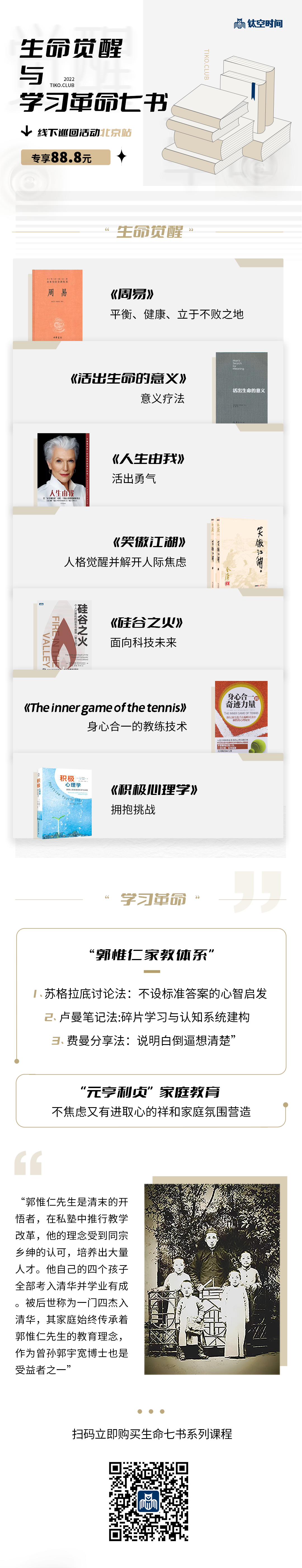 本次優(yōu)惠價(jià)格將持續(xù)到本月底,預(yù)售特惠價(jià)88.88元,得價(jià)值272元的“生命覺(jué)醒與學(xué)習(xí)革命”的經(jīng)典七書(shū)系列課程,通過(guò)閱讀鏈接卓越的靈魂!