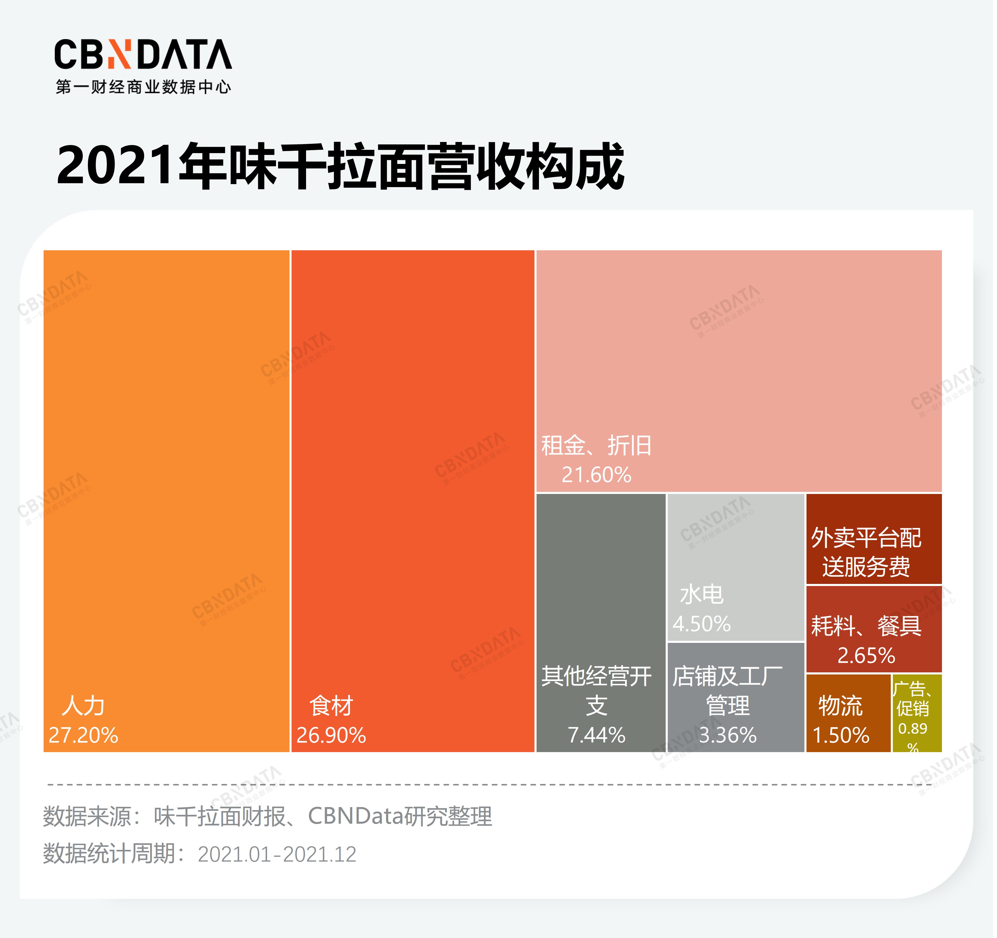 不僅如此,該門店模型并未將大多數(shù)餐飲企業(yè)均會涉及的一次性耗材、外賣配送費、廣告營銷費用等納入考量。以面館龍頭味千拉面為例,光是外賣平臺配送服務費占營收的比例就接近3%,而張拉拉的營收更加依賴外賣。根據(jù)窄門餐眼數(shù)據(jù),張拉拉的外賣訂單量是味千拉面的1.5倍不止,其需要支付的外賣配送費更高。若將這些因素全部都考慮進來,不僅回本的時間要拉長,門店盈利也是難題。