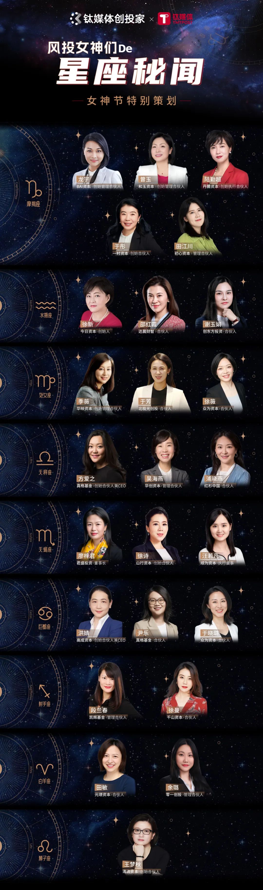以上就是由鈦媒體創(chuàng)投家精心為大家貢獻(xiàn)的風(fēng)投女王們的星座秘聞~僅供娛樂(lè),切勿認(rèn)真~