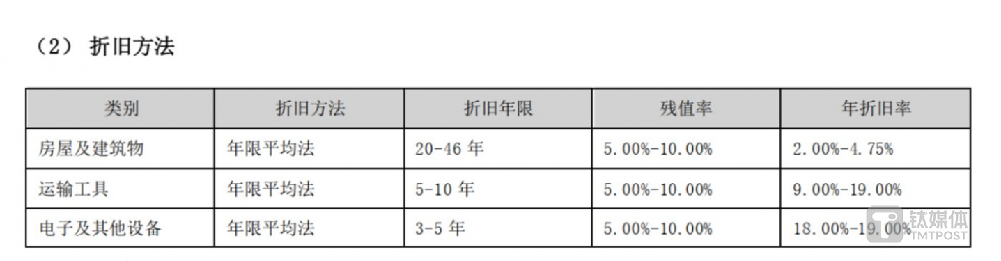 然而,鈦媒體APP發(fā)現(xiàn),公司固定資產(chǎn)的折舊年限有點(diǎn)長(zhǎng)。據(jù)2023年年報(bào)顯示,公司房屋建筑物折舊年限最長(zhǎng)居然高達(dá)46年。而對(duì)比A股上市公司來(lái)看,公司的固定資產(chǎn)折舊年限要長(zhǎng)于其他公司。