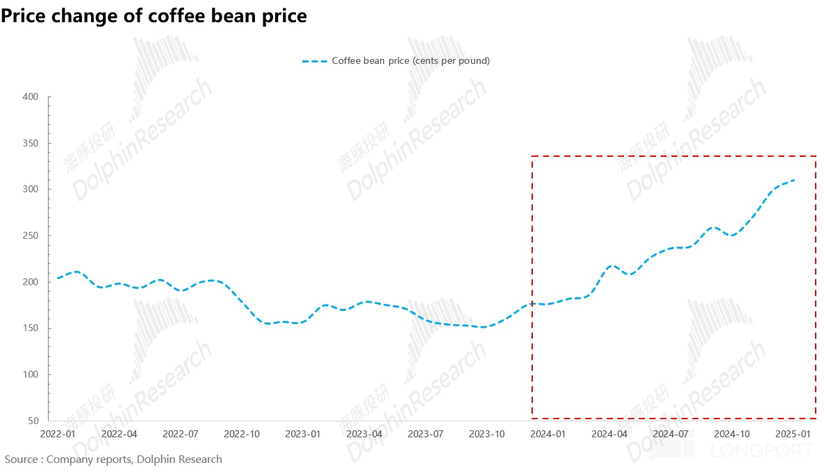 毛利率上,由于極端天氣原因使得咖啡豆價格超預(yù)期上漲(Q4 咖啡豆價格再度上漲 25%,全年累計上漲超 70%),盡管公司通過提前鎖價等方式對沖,但毛利率仍然小幅不及預(yù)期。