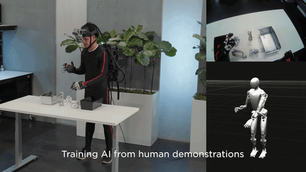 與之形成鮮明對(duì)比的是馬斯克的“擎天柱”機(jī)器人的訓(xùn)練方式,特斯拉的研究團(tuán)隊(duì)使用大量操作員通過(guò)佩戴 VR 頭顯和使用高精度傳感器及動(dòng)作捕捉服的方式遠(yuǎn)程控制教學(xué)。類似于,把機(jī)器人當(dāng)成提線木偶一樣進(jìn)行訓(xùn)練,通過(guò)獲得的數(shù)據(jù)讓機(jī)器人實(shí)現(xiàn)“肌肉記憶”,以完成像抓取雞蛋一樣的精細(xì)動(dòng)作。