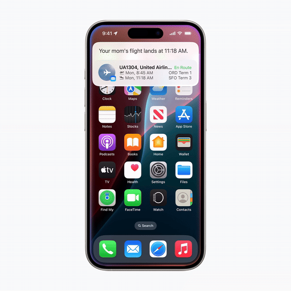 蘋果不僅給它增加了文字輸入模式,還計劃賦予它連續(xù)對話、感知屏幕的能力和更強的“智力”。比如,在去年發(fā)布會的演示中,用戶詢問Siri“媽媽的航班什么時候降落”,Siri可以自行結(jié)合其郵件內(nèi)容和航班動態(tài),給出到達(dá)時間。