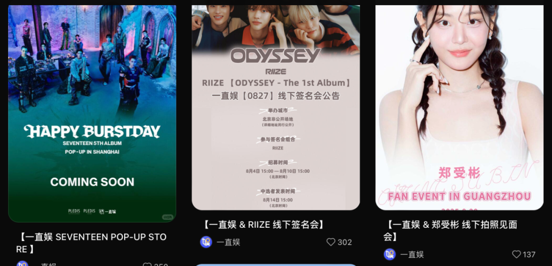 2023年線下活動放開后,不少韓團陸續(xù)來華舉辦小規(guī)模簽售會。據(jù)不完全統(tǒng)計,當下能主辦韓國偶像的簽售平臺多達18個。韓國一線女團Twice就在出道的第十年來到了中國,在上海跳起了《上海之戀》。在小紅書搜索「韓團 簽售」,未來兩月還有不少韓團會來。