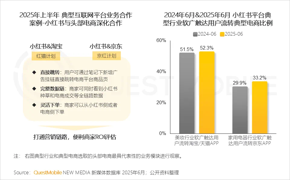 但其中最被關(guān)注的是與阿里、京東的合作,這意味著小紅首次全面開放筆記外鏈,允許用戶從種草內(nèi)容直接跳轉(zhuǎn)至淘寶、京東完成交易。
