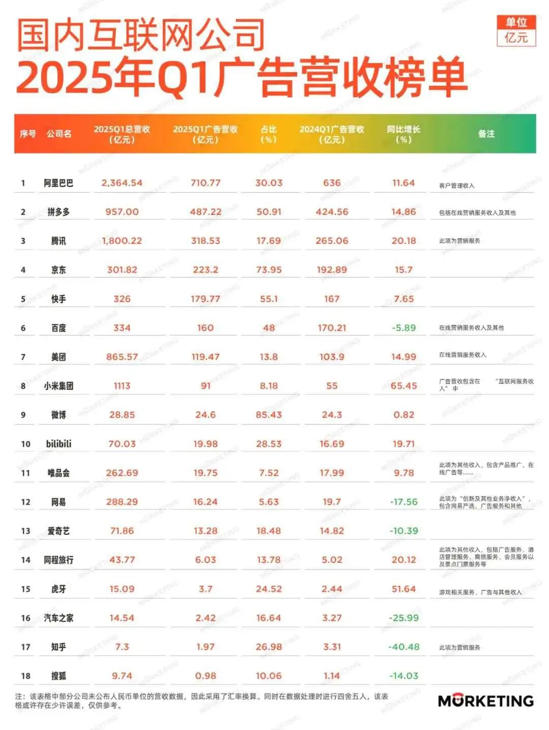 快手和B站Q1廣告收入分別為179.77億元、19.98億元(圖源自Morketing)