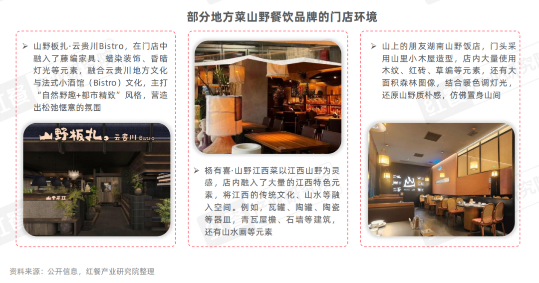 近年來,在中式正餐賽道也出現(xiàn)了一批山野餐飲品牌,它們聚焦于地方菜系打造“山野風(fēng)”,形成了鮮明的特色,成功走出了差異化的路徑。