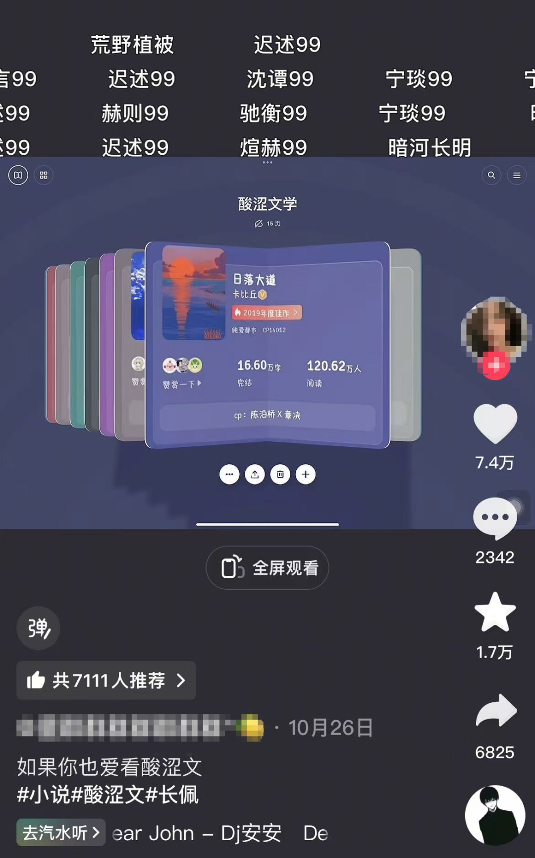 只能說(shuō),如果還沒(méi)被精準(zhǔn)推到過(guò)“如果你也愛(ài)看酸澀文”為文案,《Dear John》為bgm的視頻的讀者,很難算一個(gè)合格的小說(shuō)妹。