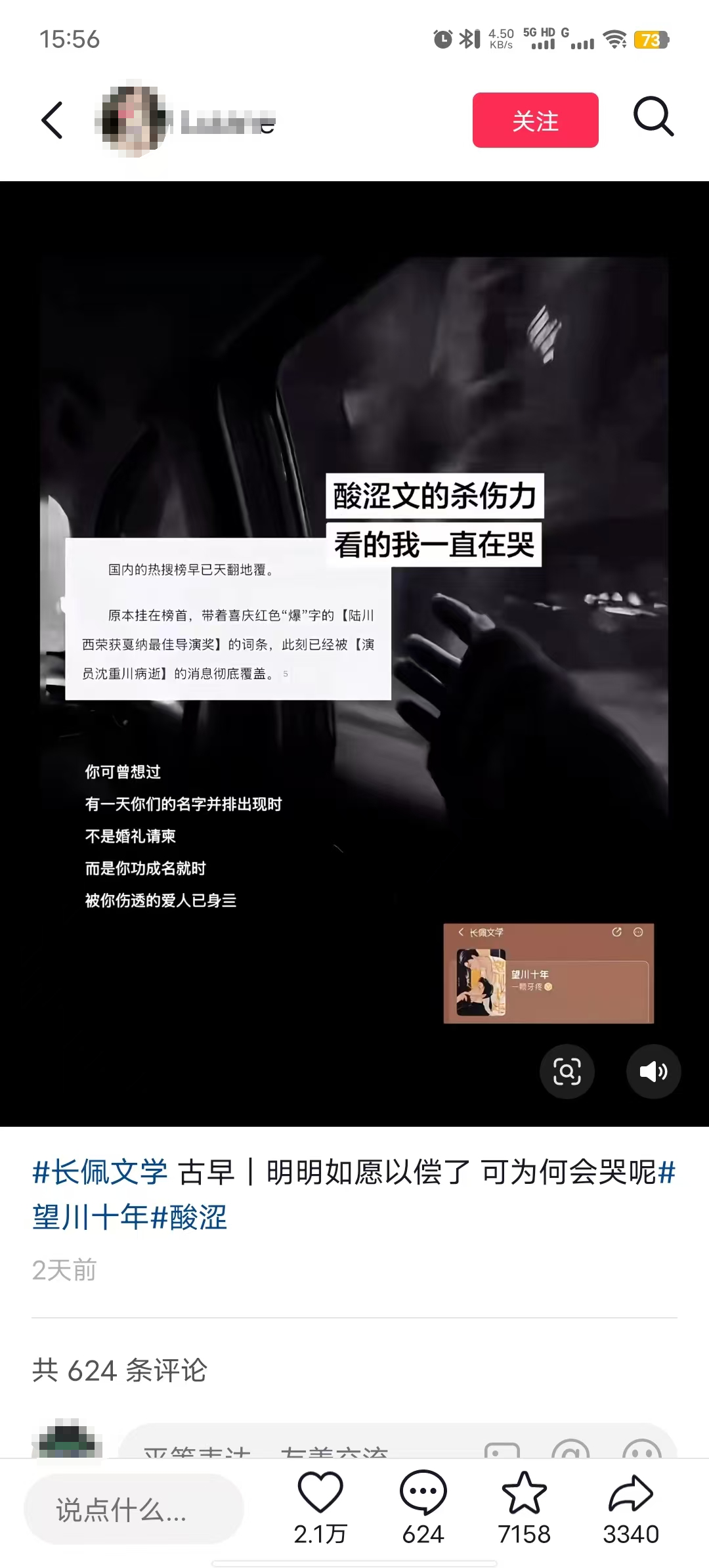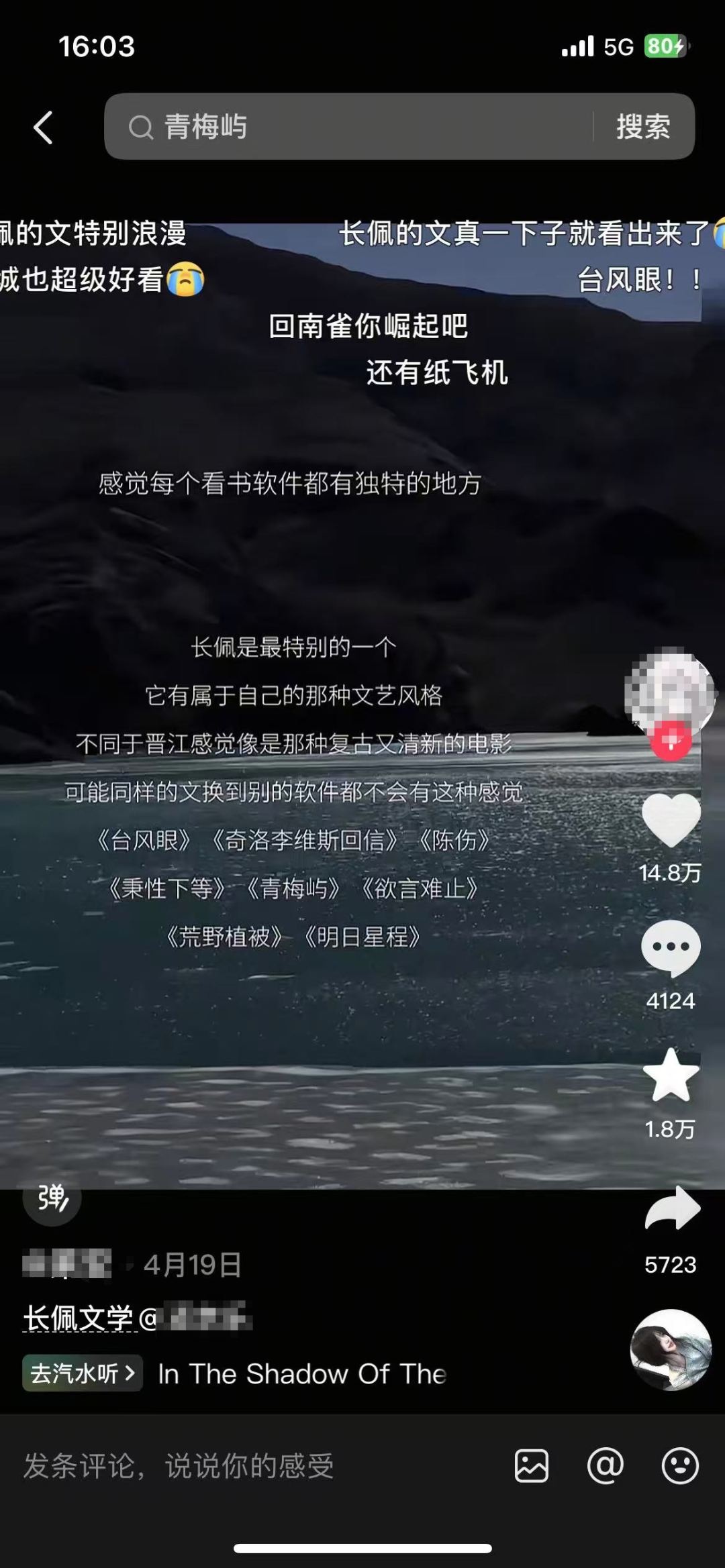 這種情節(jié)被創(chuàng)作成“情緒流文字切片+氛圍感音樂(lè)”的短視頻:用廣播劇、有聲書(shū)配音的“酸澀名場(chǎng)面”,或純文字金句,搭配短視頻熱門(mén)bgm。這樣的視頻切片往往可以收獲10w+的點(diǎn)贊。