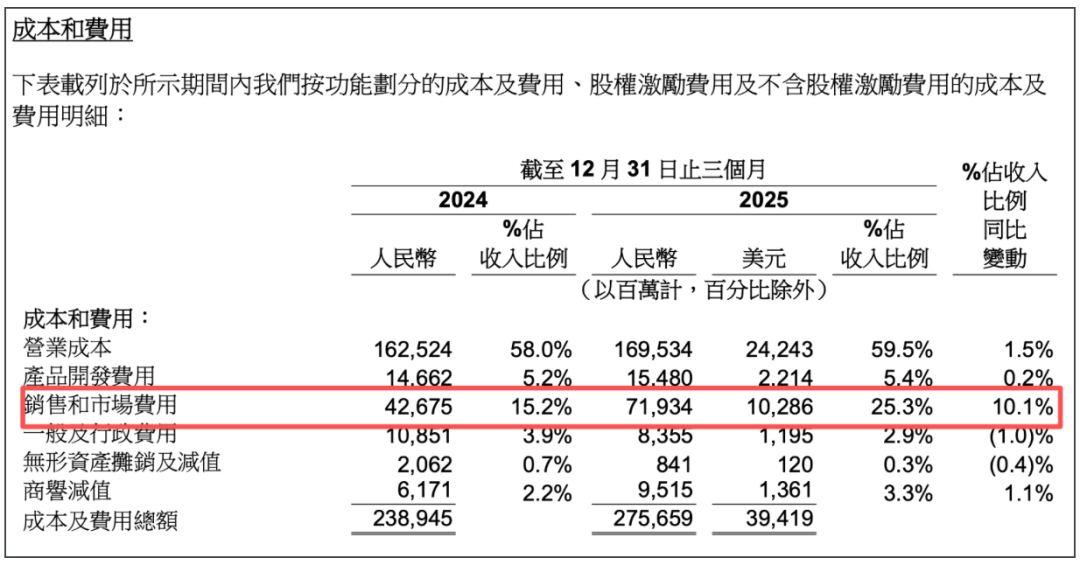 這也導(dǎo)致,阿里營(yíng)銷費(fèi)用本季高達(dá)719億元,比上年同期427億元,增多了292億元,幾乎翻了70%。