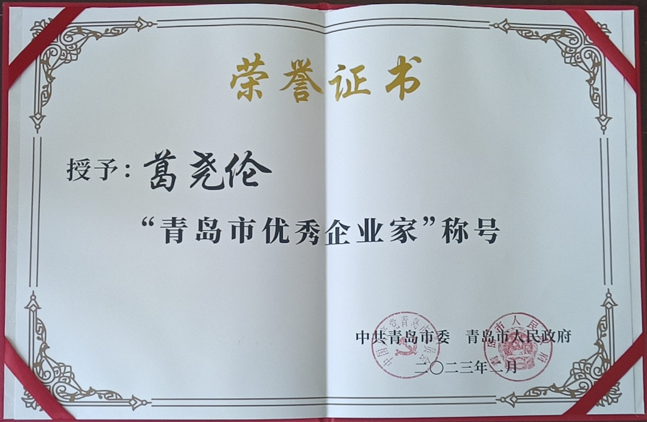 At the meeting, ' the decision to commend outstanding entrepreneurs in Qingdao ' was read out, and Ge Yaolun, chairman of the group, was awarded ' outstanding entrepreneurs in Qingdao '.