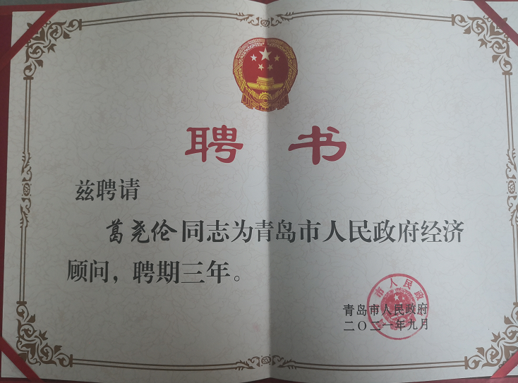 In order to give full play to the wisdom advantages of the expert group and further improve the forward-looking, scientific, democratic, and preciseness of government decision-making, Qingdao has hired private entrepreneurs from different industries to serve as economic advisors to the Qingdao Municipal People’s Government to form a "think tank." , To provide advice and suggestions for the formulation and introduction of the government's strategy. Zhu Peiji, Vice Mayor of Qingdao City, issued a letter of appointment to Hailir Pharmaceutical Group Chairman Ge Yaolun.