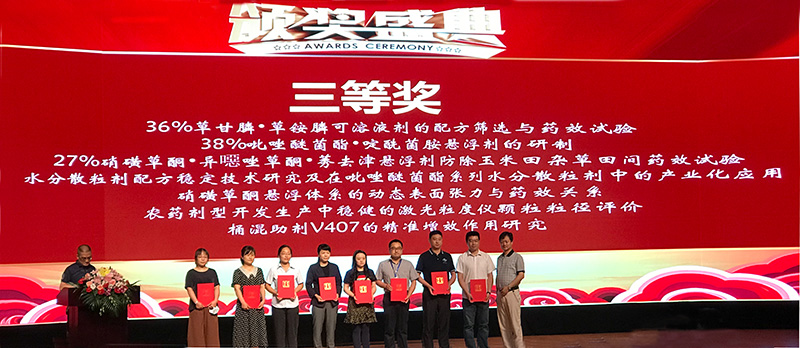 ? ? Sponsored by China Pesticide Industry Association and organized by China Pesticide Industry Preparation Innovation Industry Alliance, the 7th Environmentally friendly Pesticide Preparation Processing Technology Seminar was held in Yangzhou, Jiangsu province on August 4, 2020. In order to promote product innovation, quality excellence and technological innovation of China's pesticide preparation industry, promote craftsmanship, set up a model of industrial ingenuity, and encourage and commend the units that have made outstanding contributions, the conference specially selected the model of China's pesticide formulation industry in 2020, the herbicide Qian Mu Jin which is belong to Hailir Pesticides and Chemicals Co.,Ltd ?(15% nitrosulfonone suspension), won the award.