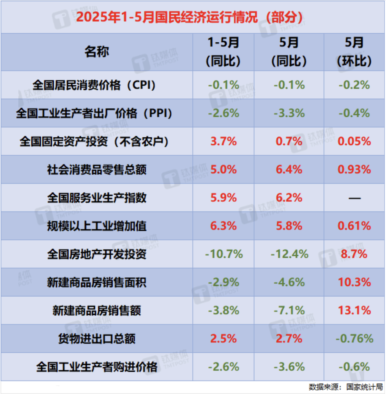 【鈦媒體綜合】據(jù)新華社,6月16日國家統(tǒng)計(jì)局發(fā)布的數(shù)據(jù)顯示,今年5月份,國民經(jīng)濟(jì)頂住壓力平穩(wěn)運(yùn)行,生產(chǎn)需求穩(wěn)定增長,就業(yè)形勢總體穩(wěn)定,新動(dòng)能成長壯大,高質(zhì)量發(fā)展向優(yōu)向新。