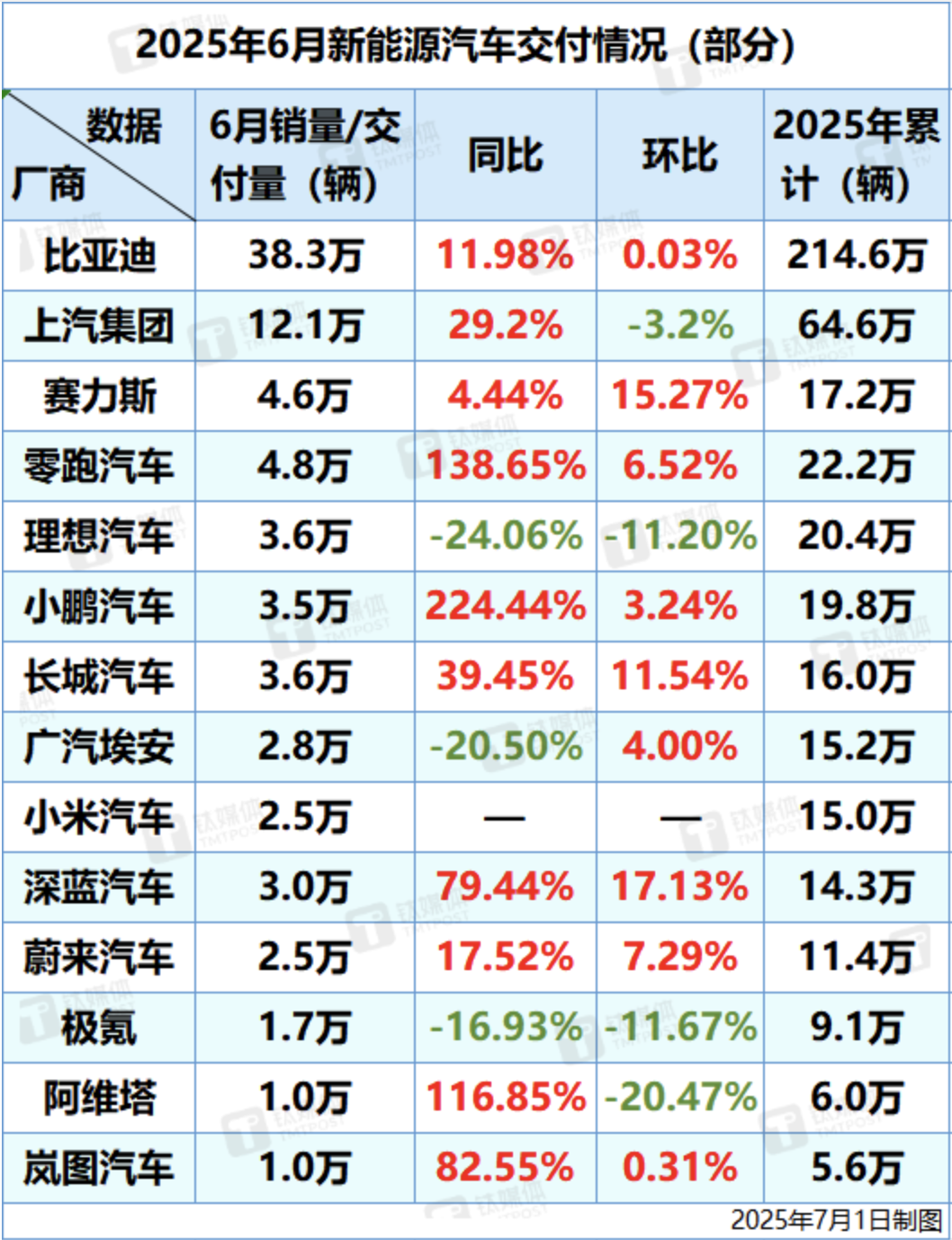 新能源汽車(chē)6月交付情況速覽:7家交付量超3萬(wàn),5家同比增超50%