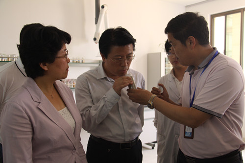 2010年6月8日,城陽區(qū)委常委、副區(qū)長江敦濤(中)來公司視察工作