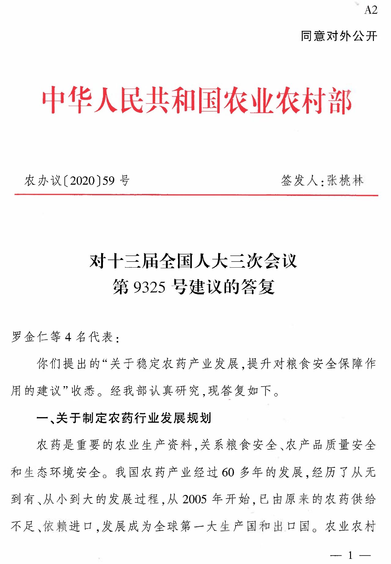 你們提出的“關于穩(wěn)定農(nóng)藥產(chǎn)業(yè)發(fā)展,提升對糧食安全保障作用的建議”收悉。經(jīng)我部認真研究,現(xiàn)答復如下。?