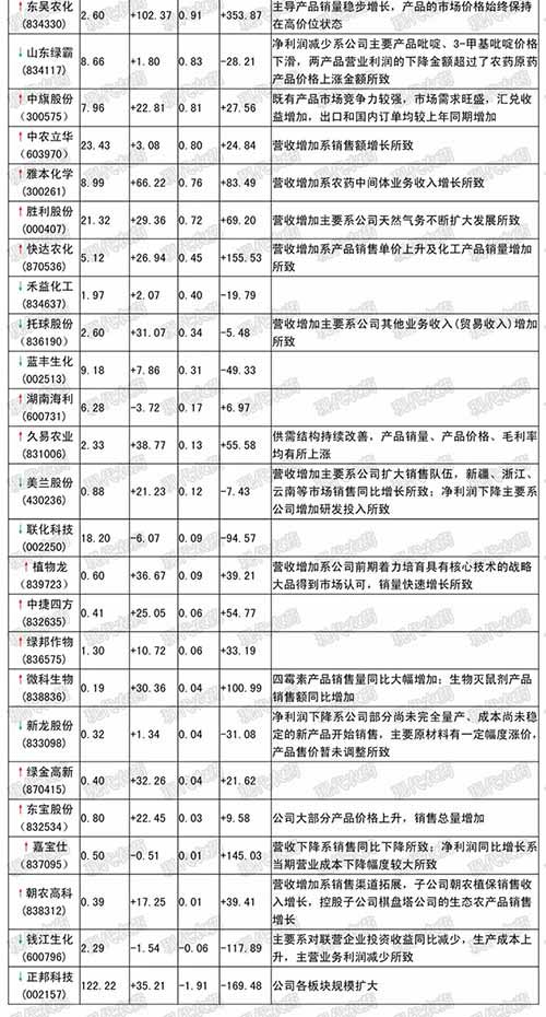 近日,國內(nèi)農(nóng)藥上市公司紛紛發(fā)布了2018年半年度報(bào)告,據(jù)統(tǒng)計(jì)的46份報(bào)告中披露的數(shù)據(jù)來看,上半年,44家盈利,2家虧損,35家公司凈利潤(rùn)同比增長(zhǎng),占比76%,且9家公司凈利潤(rùn)增幅超100%;凈利潤(rùn)超過1億元的有20家,占比43%,凈利潤(rùn)不足0.5億元的有19家,占比41%??傮w而言,上半年國內(nèi)農(nóng)藥行業(yè)需求逐步回暖,產(chǎn)品價(jià)格、銷量等有所回升,多數(shù)企業(yè)業(yè)績(jī)向好;由于受環(huán)保整治、停限產(chǎn)等因素影響,部分企業(yè)業(yè)績(jī)下滑。