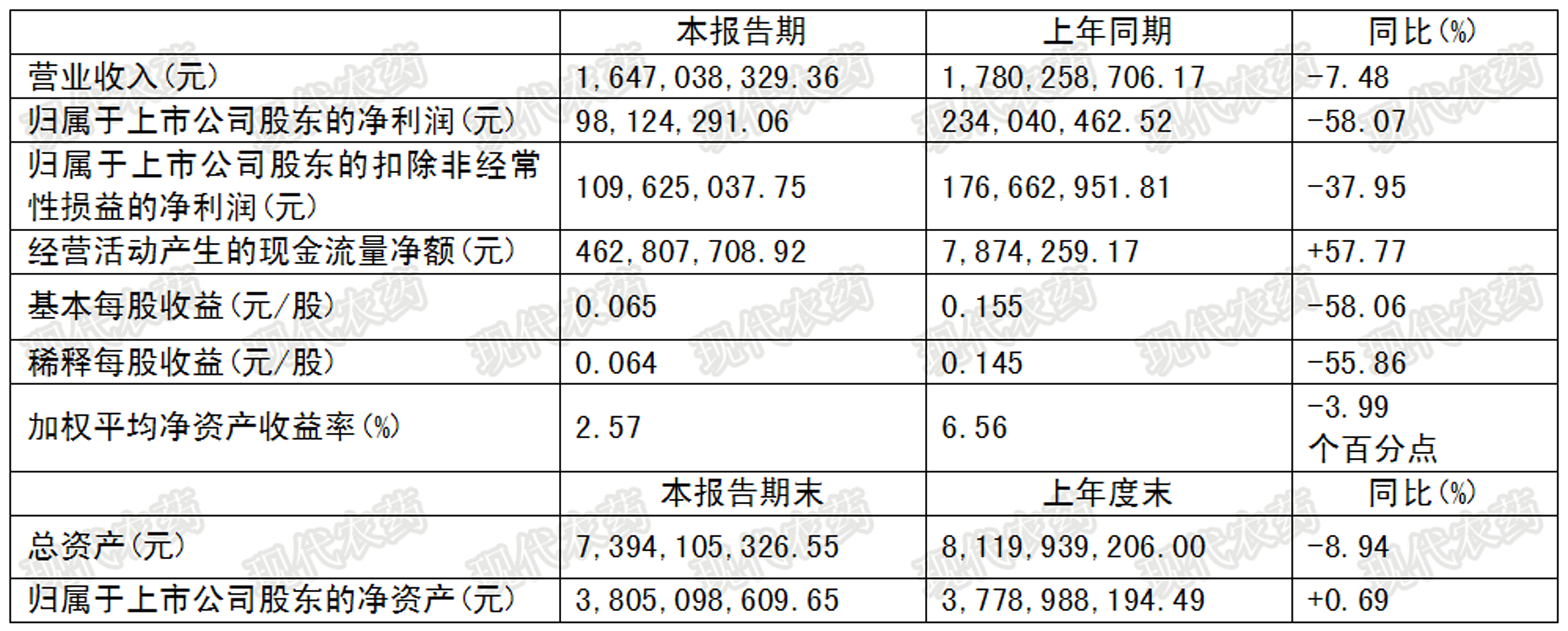 ??? 報告期內(nèi),公司圍繞農(nóng)化+生物農(nóng)業(yè)+倉儲物流多板塊的發(fā)展戰(zhàn)略,緊緊圍繞年初制訂的目標(biāo)任務(wù),積極開展有關(guān)工作。上半年實現(xiàn)營業(yè)收入164,703.83萬元,同比下降7.48%,實現(xiàn)歸屬于上市公司股東的凈利潤9,812.43萬元,同比下降58.07%。