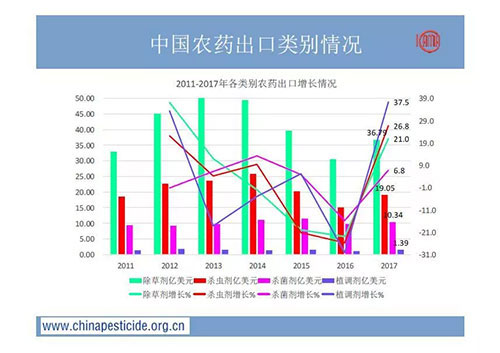 ??? 預計2018年,我國農藥出口貿易將持續(xù)保持增長趨勢,預計增長速度將超過2位數。