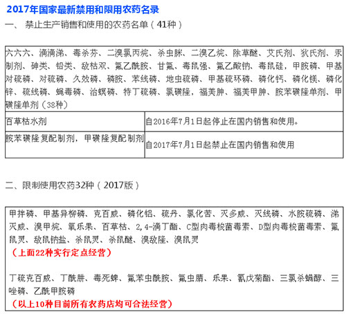??? 也就是說(shuō)只有獲得定點(diǎn)經(jīng)營(yíng)資格的農(nóng)藥經(jīng)營(yíng)點(diǎn)才可以銷(xiāo)售以上農(nóng)藥,不過(guò)根據(jù)農(nóng)業(yè)農(nóng)村部2017年出臺(tái)的《限制使用農(nóng)藥名錄(2017版)》,里面標(biāo)注的限制使用農(nóng)藥共有32種,其中就包括目前使用量較大的毒死蜱、丁硫克百威、樂(lè)果這些產(chǎn)品。