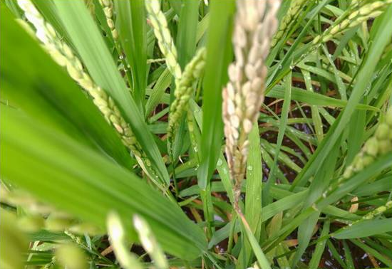 對(duì)照區(qū)部分水稻植株發(fā)生穗頸瘟