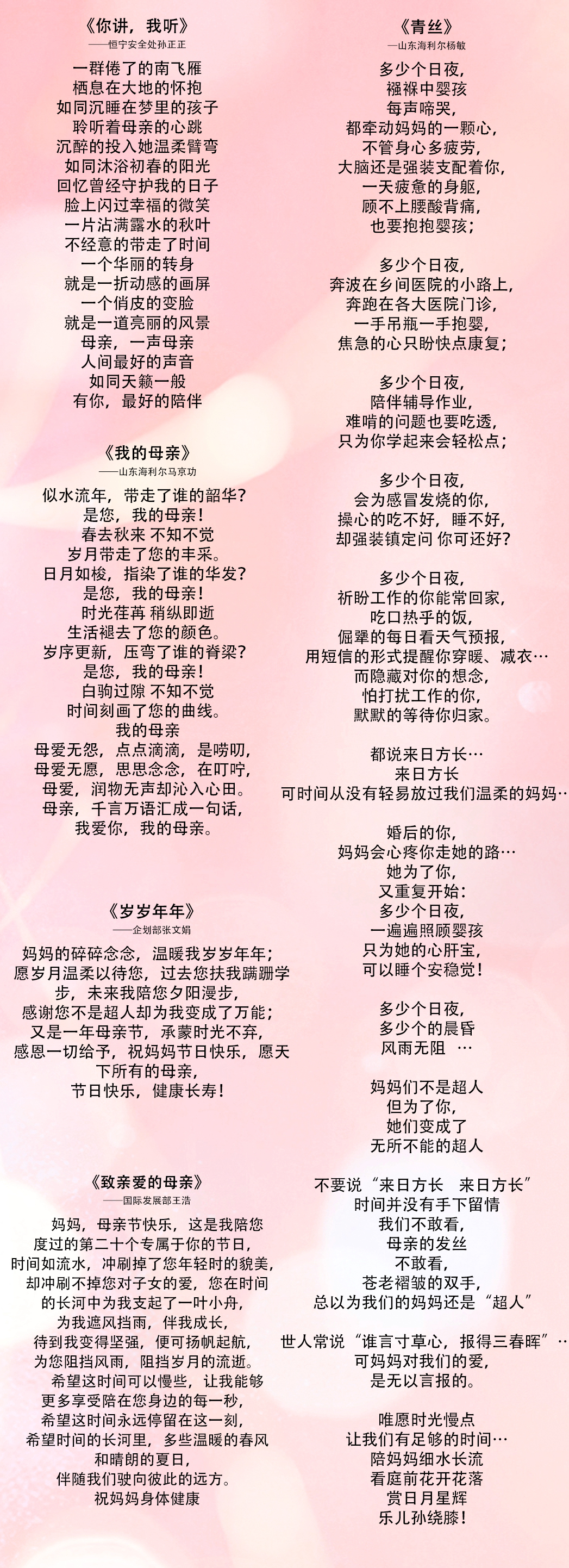? ? ? 經(jīng)三天投票評選,現(xiàn)對參與活動的部分優(yōu)秀作品進行展示,一起來感受對媽媽們的愛與祝福!