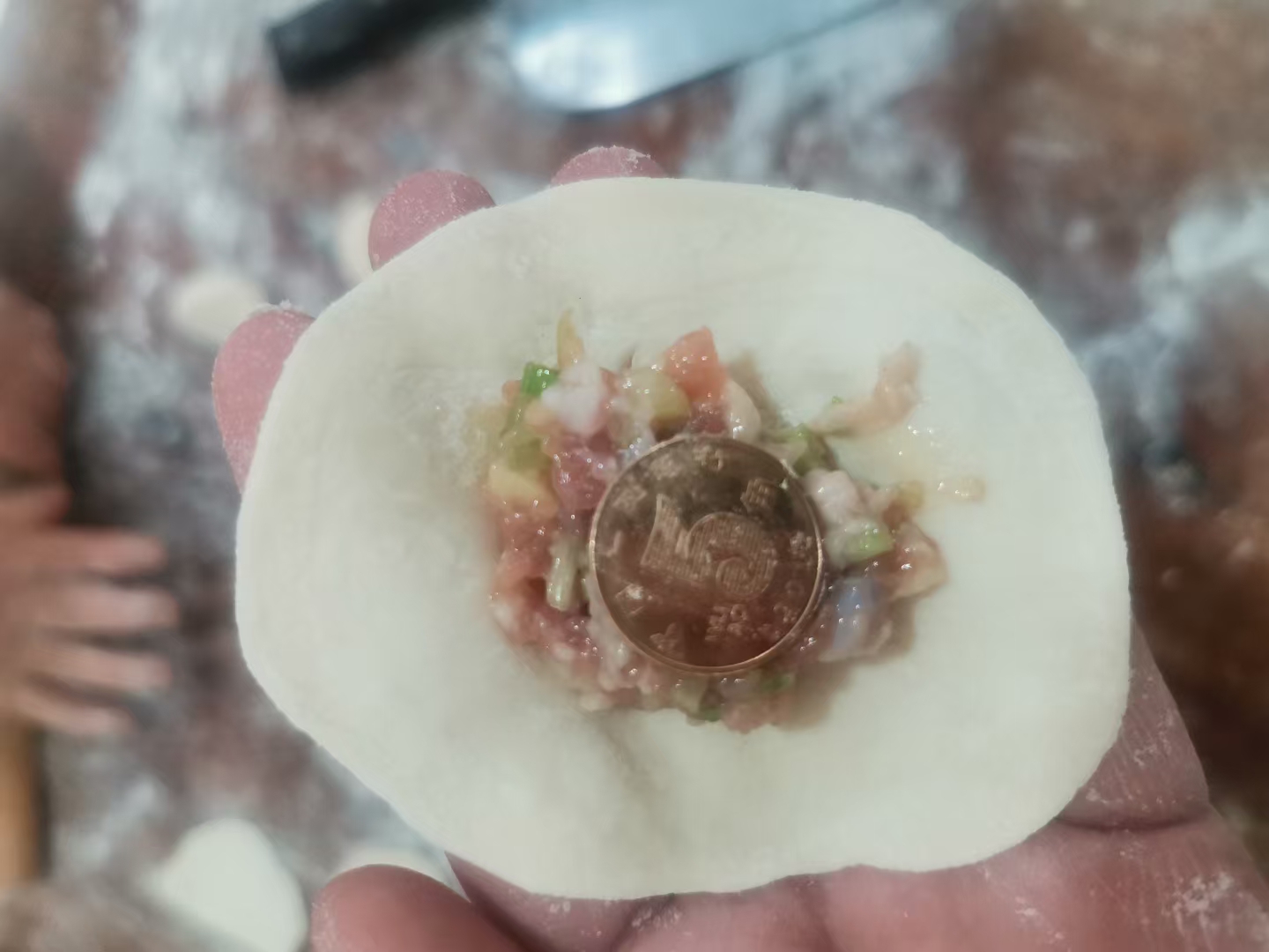 ? ? ? 包餃子開始,硬幣寓意財(cái)源廣進(jìn),紅棗寓意紅紅火火,糖寓意甜甜蜜蜜,栗子寓意工作順利!!一搟,二填,三捏皮, 包進(jìn)了歡喜,品出了甜蜜。