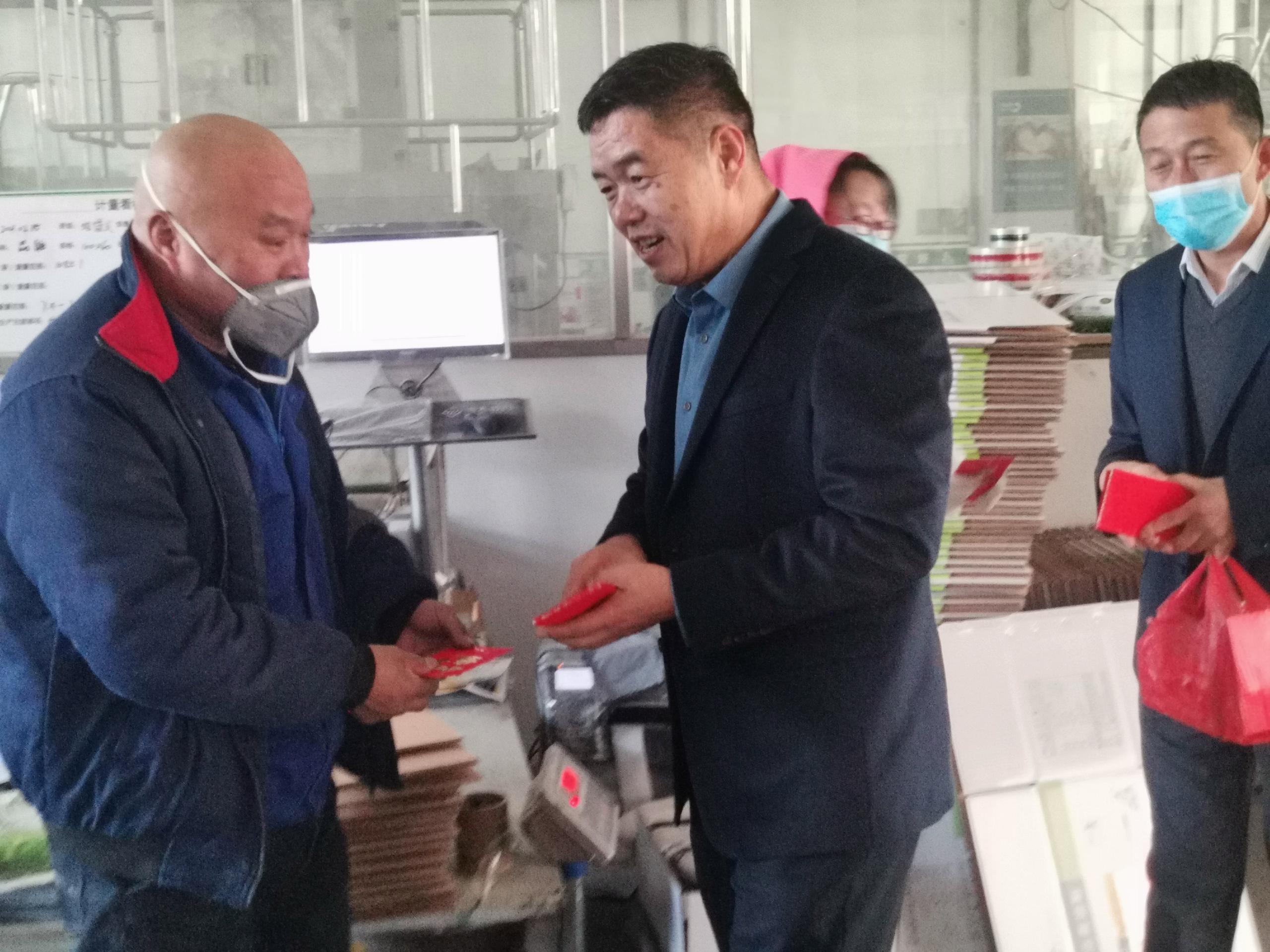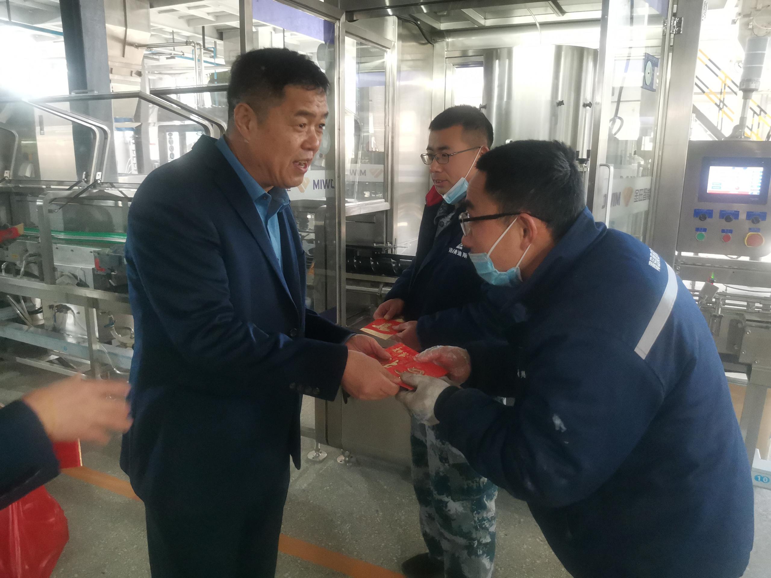 ? ? ? 2月12日大年初一一早,集團(tuán)總裁葛家成親自到工廠一線送祝福,致敬節(jié)日堅(jiān)守者,讓大家進(jìn)一步深切感受到這個新年不一樣的溫暖與關(guān)懷。