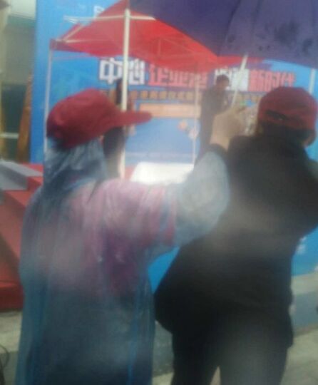 ? ? ? ? 簽完到先在雨中來個賽前合影吧: