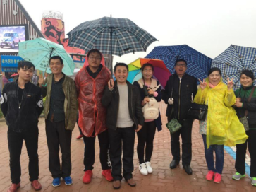 ? ? ? 盡管這天下著雨,員工們還是興高采烈的在家門口觀看風(fēng)箏表演。