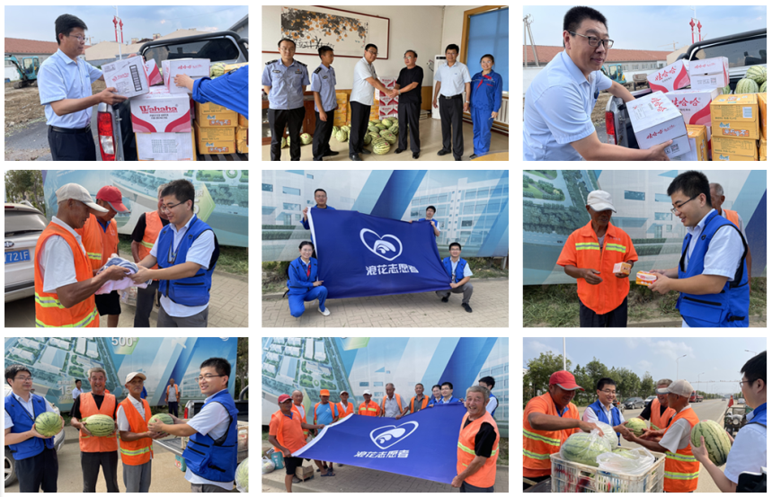 ? ? 下午14時(shí)許,也是一天中最熱的時(shí)候,志愿者再次出發(fā),為園區(qū)22名環(huán)衛(wèi)工人送上西瓜、毛巾、肥皂等慰問(wèn)物資。志愿者們與環(huán)衛(wèi)工人代表一一握手,送上感謝;環(huán)衛(wèi)工人對(duì)此十分感激:“感謝海利爾利國(guó)利民的好項(xiàng)目!”
