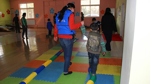 ? ? ? ?從穿上海利爾義工服的那一刻起,我們就覺得自己身上帶著一份很重的責(zé)任,用心與小朋友交流,用關(guān)愛去感化他們。進(jìn)入康復(fù)訓(xùn)練大廳,就能感受到這群孩子的“不一樣”,每個(gè)孩子都是個(gè)人玩?zhèn)€人的,沒有溝通和交流,也沒有孩子在意我們的到來??吹竭@個(gè)場景,我們都感到很心疼。我們漸漸地融入他們,整個(gè)下午我們一直在努力與他們玩游戲,幫助他們做康復(fù)訓(xùn)練。我們每個(gè)人都很耐心的跟他們玩在一起。他們對(duì)我們笑了,我們就很開心,他們跟我們講話了,我們就很滿足。